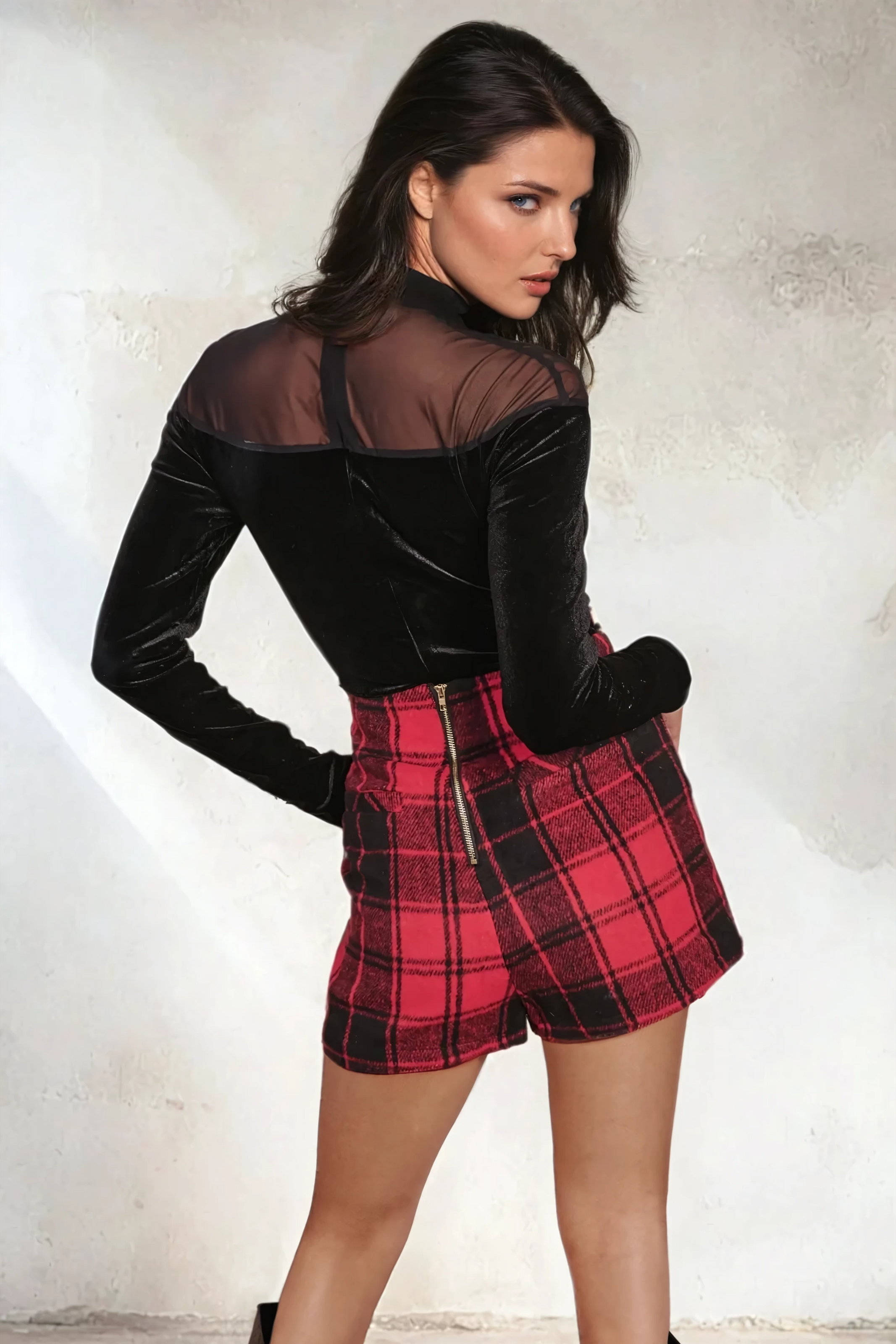 Meet the Noir Ménage Bodysuit — a daring blend of softness and seduction. Crafted from rich black velvet with a sheer mesh neckline and back panel, this piece redefines nighttime elegance. Its sculpting silhouette hugs in all the right places, while the plunging illusion neckline adds a sultry edge. Whether styled under a blazer or paired with a statement skirt, this bodysuit was made to be noticed.