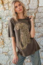 Leopard Distressed Oversize Graphic Tee