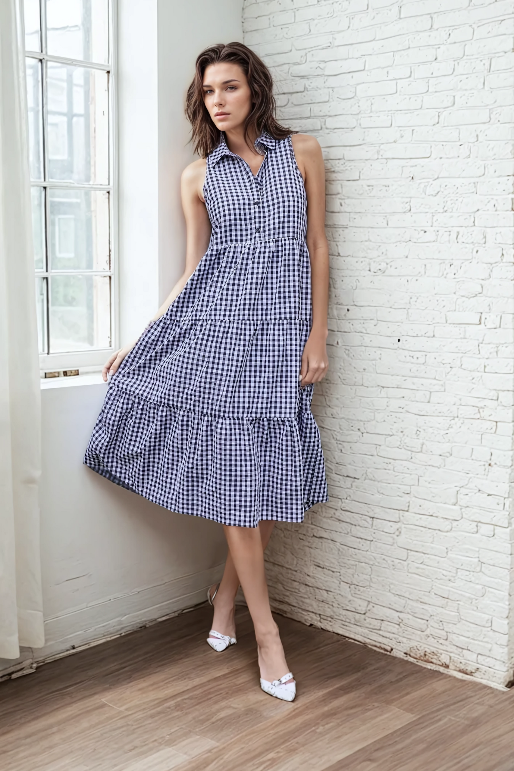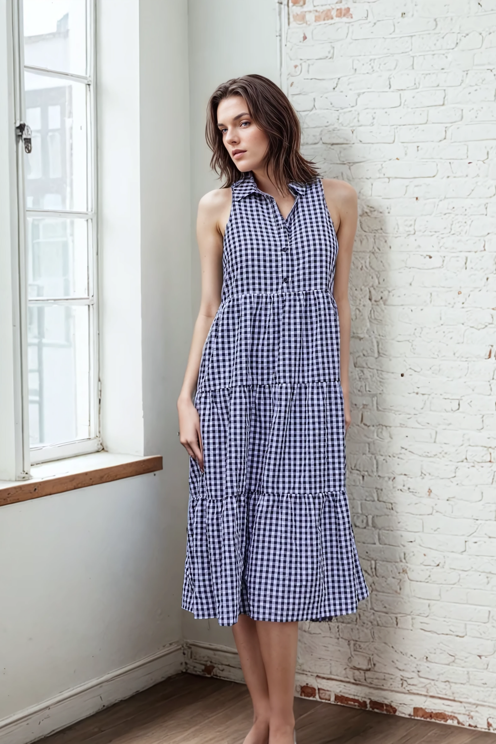 Meet your new everyday essential – the Kimbra Maxi Dress is the perfect blend of softness, ease, and understated polish. Crafted in a light, breathable cotton-blend fabric, this sleeveless design features a structured collar, a partial button-up front, and a relaxed tiered silhouette that flows with every step. Whether you're heading out for weekend errands or lounging in the sun, Kimbra brings effortless charm to any moment. Just add sandals and you're set.