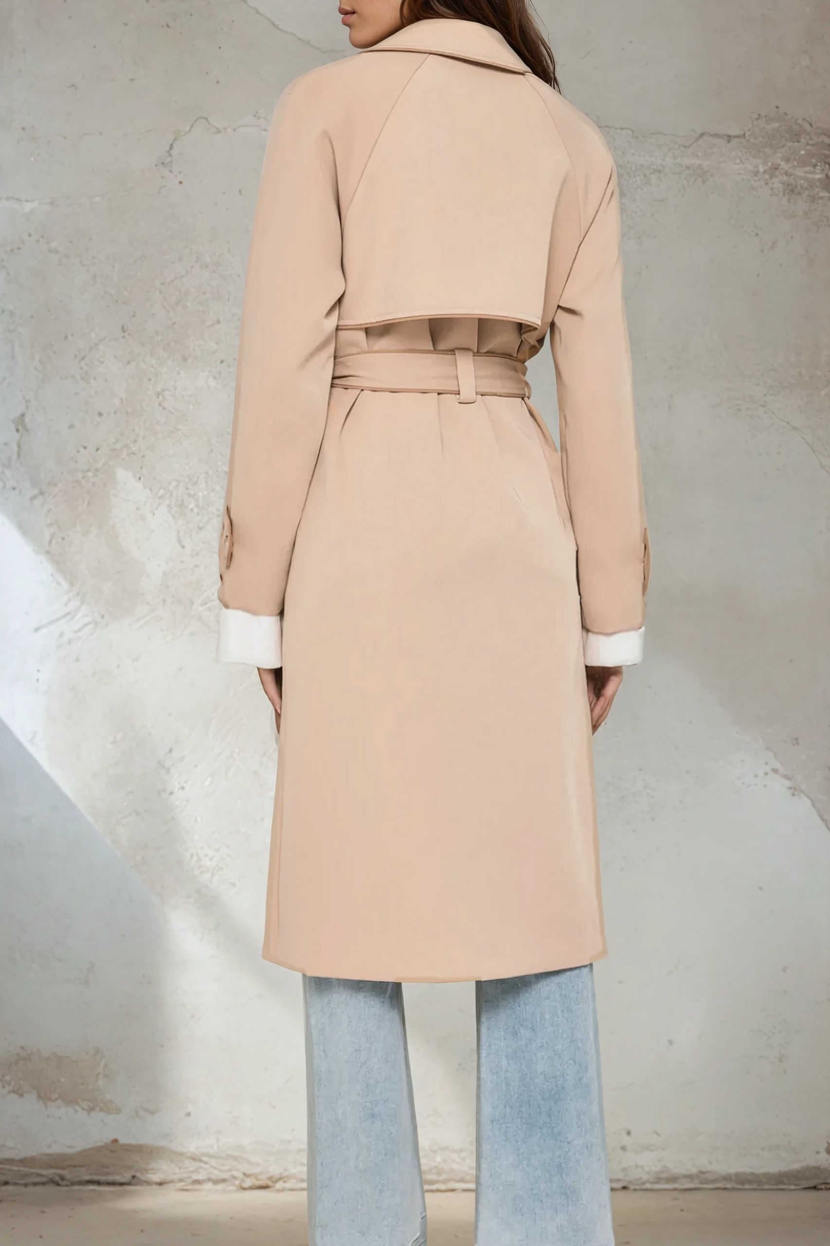 The Bella Trench Coat is your timeless outerwear staple—where sophistication meets modern minimalism. Crafted from a soft medium-weight drape fabric, this longline trench is tailored with contrast binding and refined detailing throughout. Whether cinched at the waist with the removable tie or worn open for a relaxed look, it’s the perfect piece to elevate your seasonal layering. Classic, chic, and effortlessly versatile.