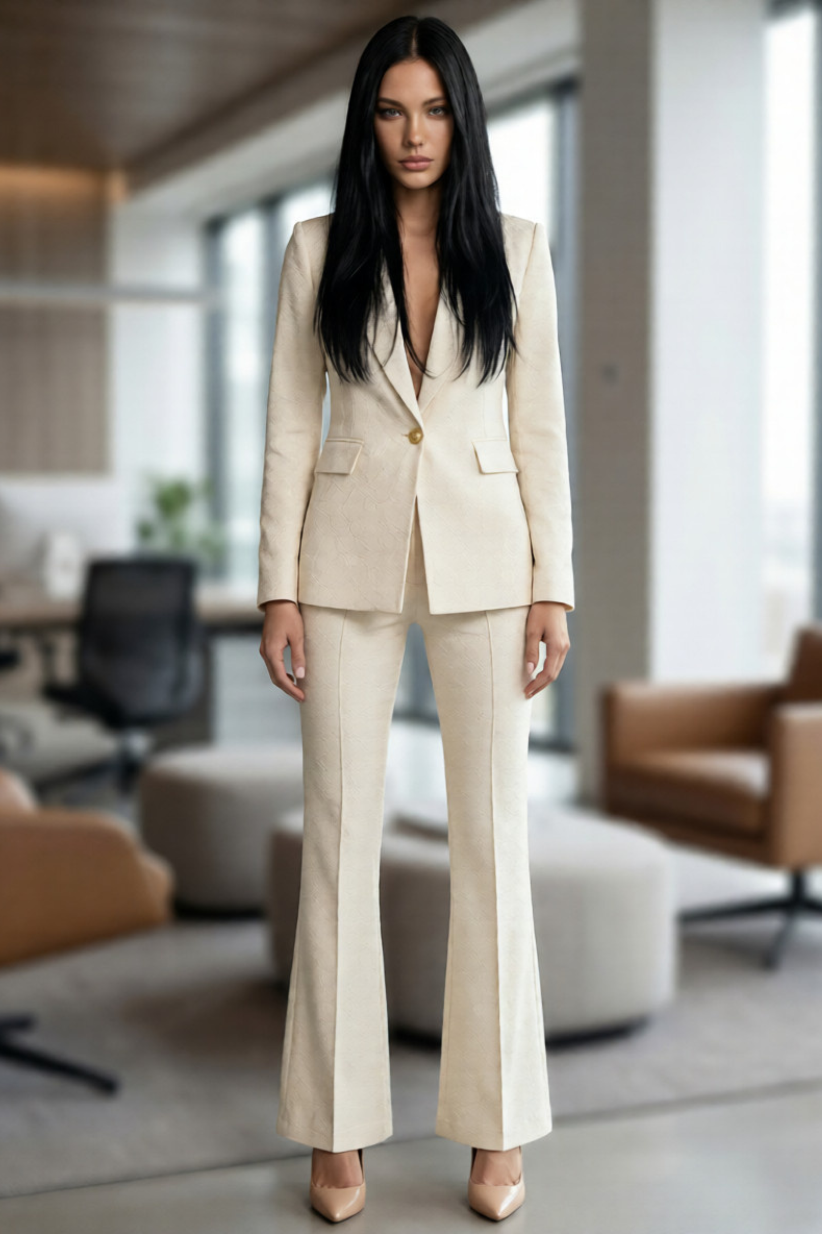 Tailored to empower, the Keegan Suit Pants are a confident wardrobe staple for modern dressing. Designed with a high-rise waist and slim, straight-leg fit, these full-length pants are cut to elongate the frame with bold front ankle splits that bring sharp, contemporary edge. Crafted from structured suiting fabric with a soft sheen in a refined bone hue, they’re the perfect foundation for an elevated neutral edit. Pair with the matching Keegan Blazer for a full power-dressing moment.