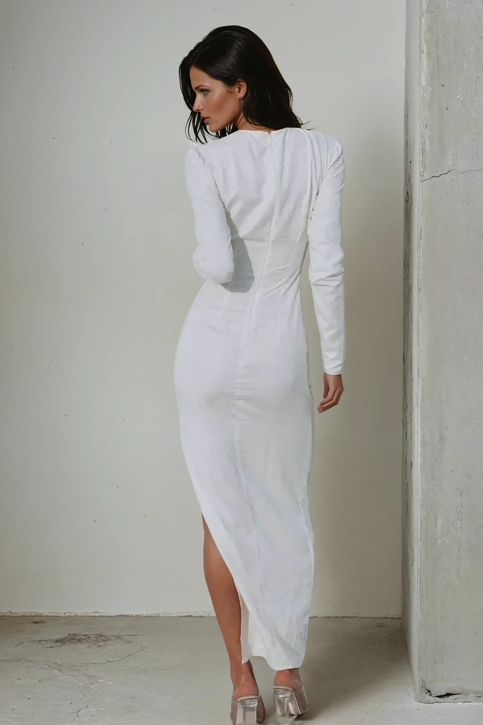 • Maxi length with thigh-high side slit
