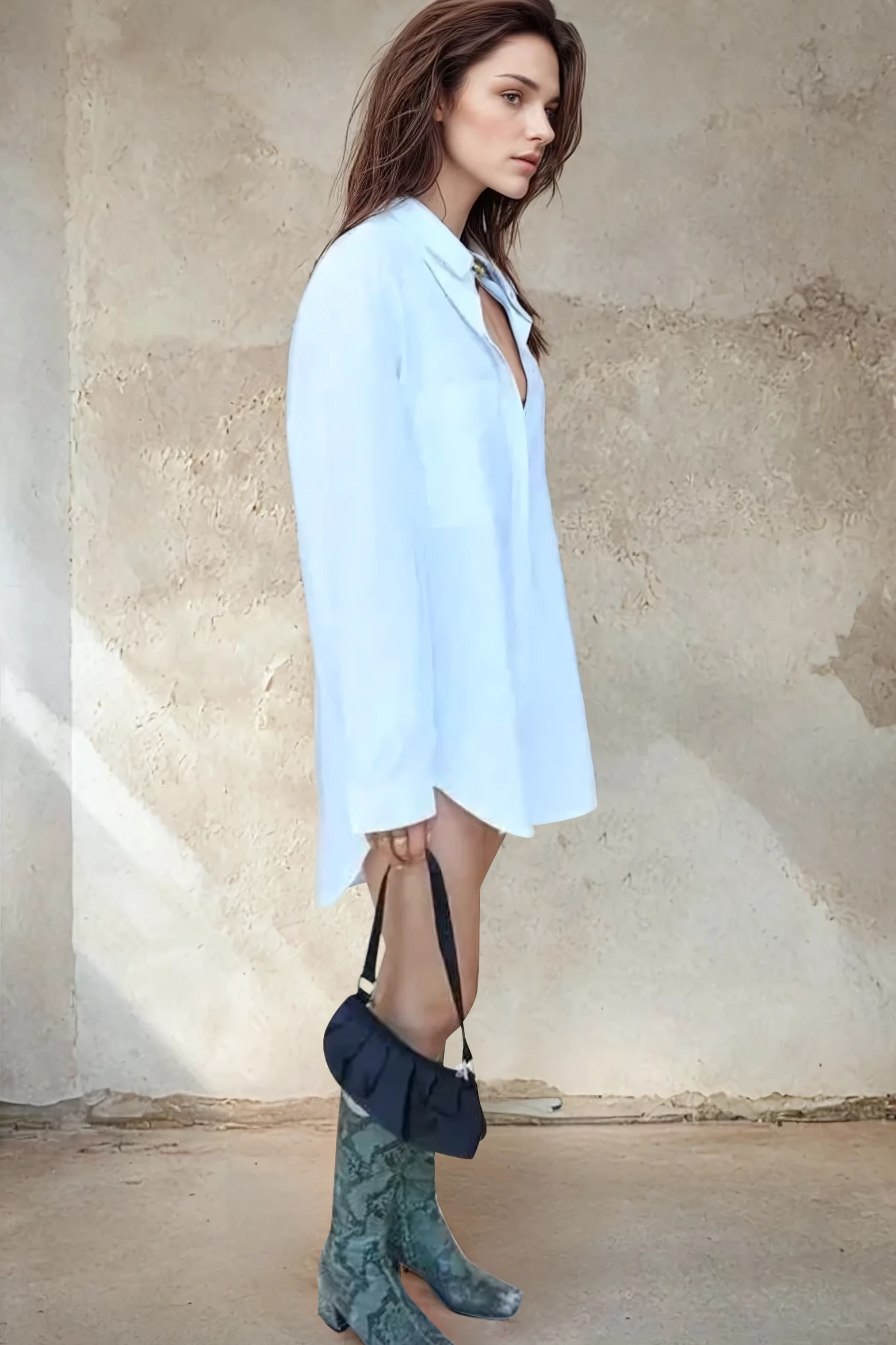 Effortlessly chic and endlessly versatile, the Bello Cotton Shirt is a wardrobe essential. Designed with an oversized fit, this crisp white button-down offers both comfort and style. Crafted from breathable cotton, it features a classic collar, a single chest pocket, and long cuffed sleeves. Whether styled as a relaxed shirt dress, layered over a tank, or tucked into denim, the Bello Shirt is perfect for an elevated off-duty look.