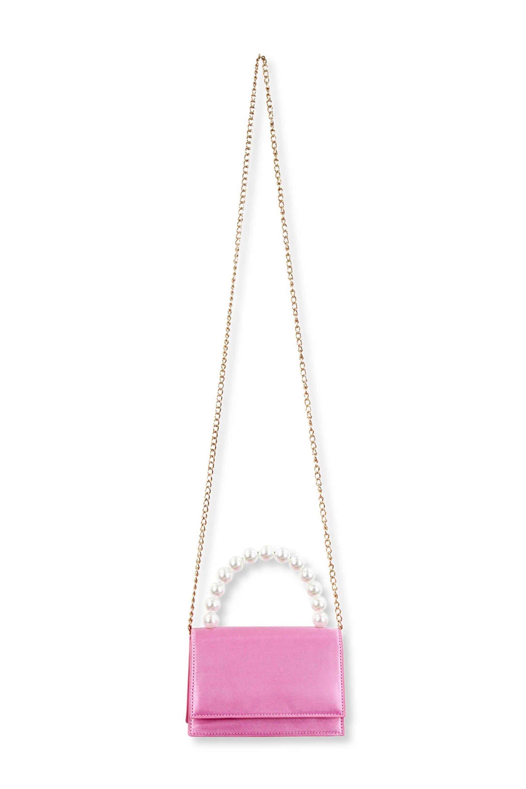 Sweet, structured, and irresistibly chic—the Candy Pearl Mini Bag adds the perfect playful polish to your event look. Designed in a glossy satin-like finish and detailed with a statement pearl handle, this small-sized stunner is made for cocktail parties, races, or bridal brunches. With its magnetic snap closure and gold chain strap, you can style it crossbody or carry it by the handle for a more refined touch.