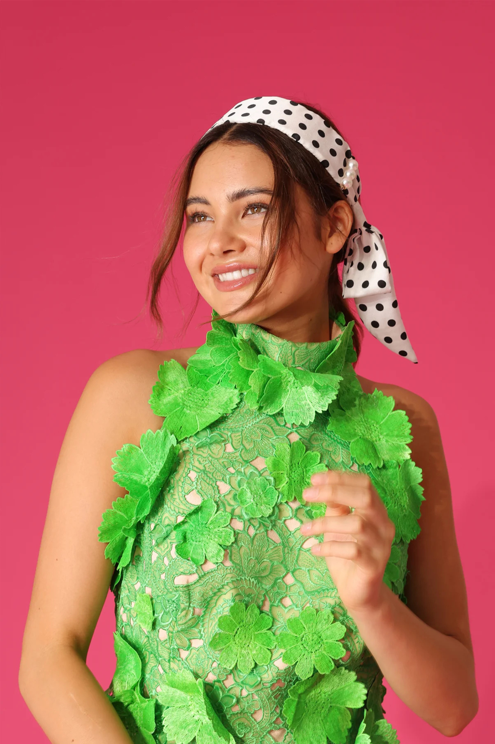Playful yet polished, the Dottie Pearl Headband adds a vintage twist to your everyday look. Crafted in a silky polka dot fabric with a knotted detail and finished with a touch of pearl charm, this style brings a whimsical pop to both casual and dressy outfits. Style it with loose waves or a sleek ponytail for instant retro flair.