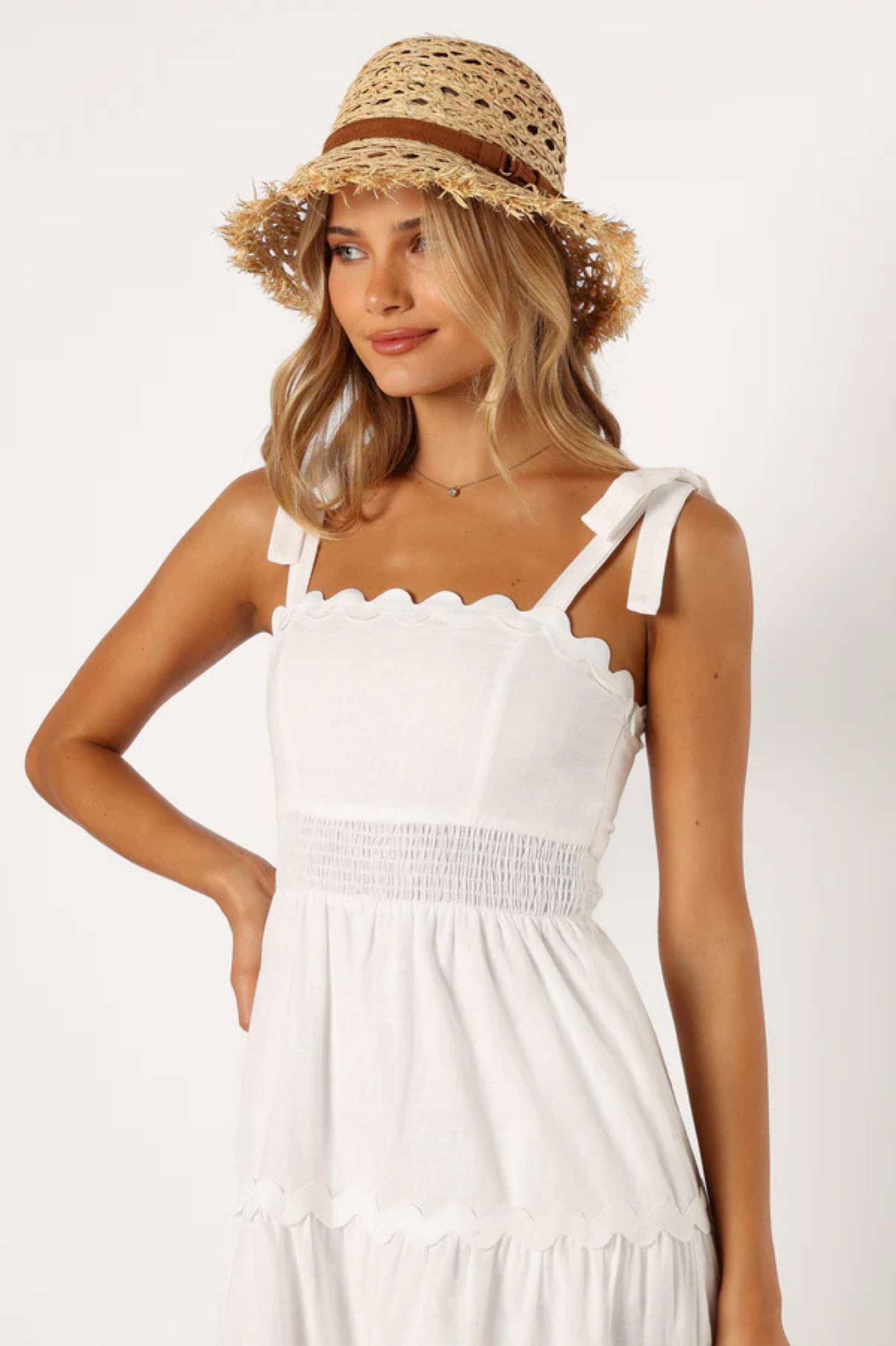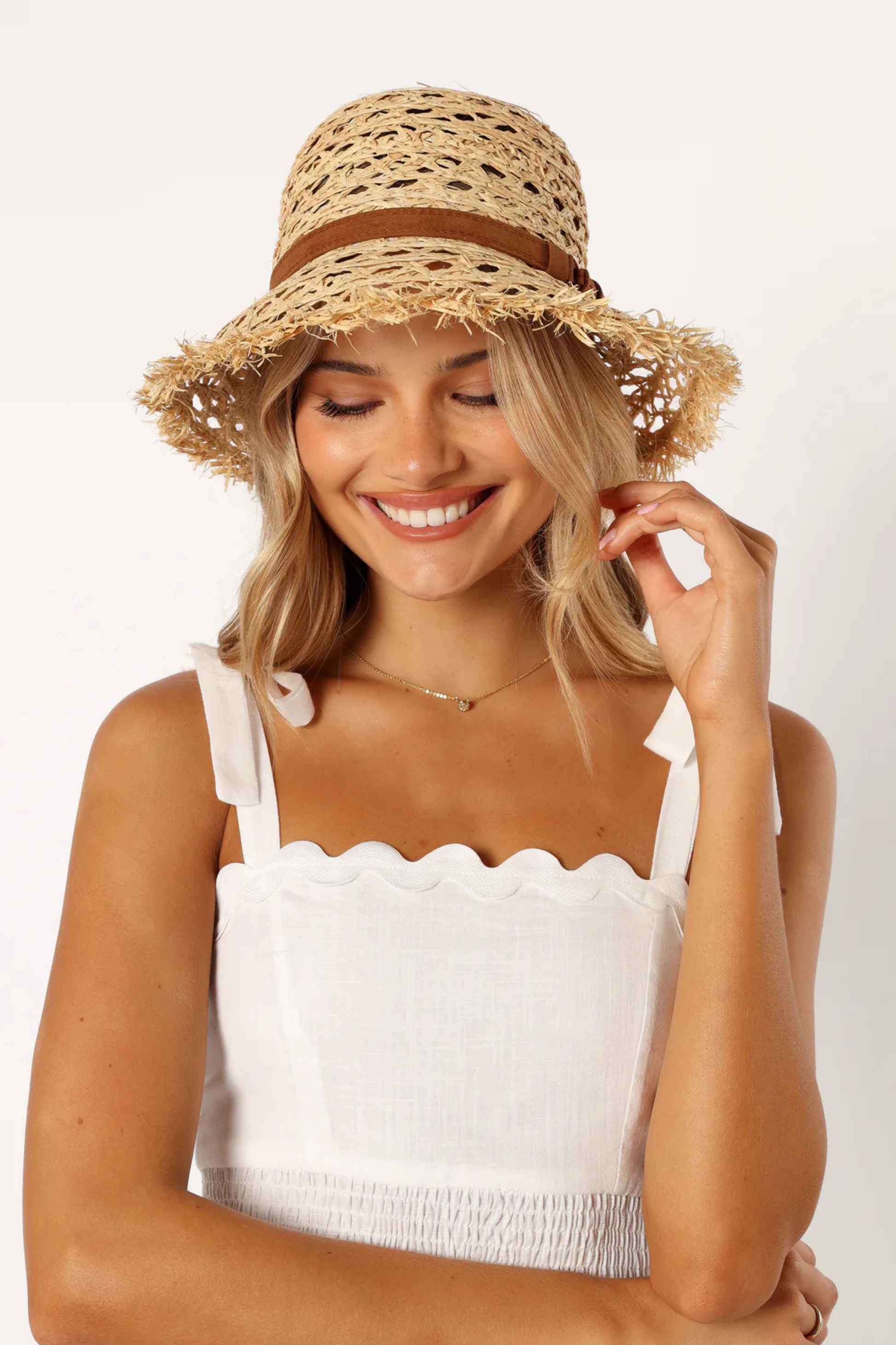 Step out in effortless summer style with the Sunlit Crochet Bucket Hat. Crafted from 100% paper straw in a delicate crochet weave, this hat combines fashion-forward design with sun protection. The narrow brim keeps your face shaded, while the suede ribbon band adds a touch of elegance, making it the perfect accessory for beach days, festivals, or sunny city strolls. Lightweight, breathable, and effortlessly chic, this bucket hat is your must-have summer headwear.